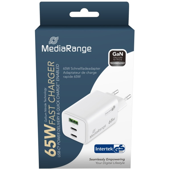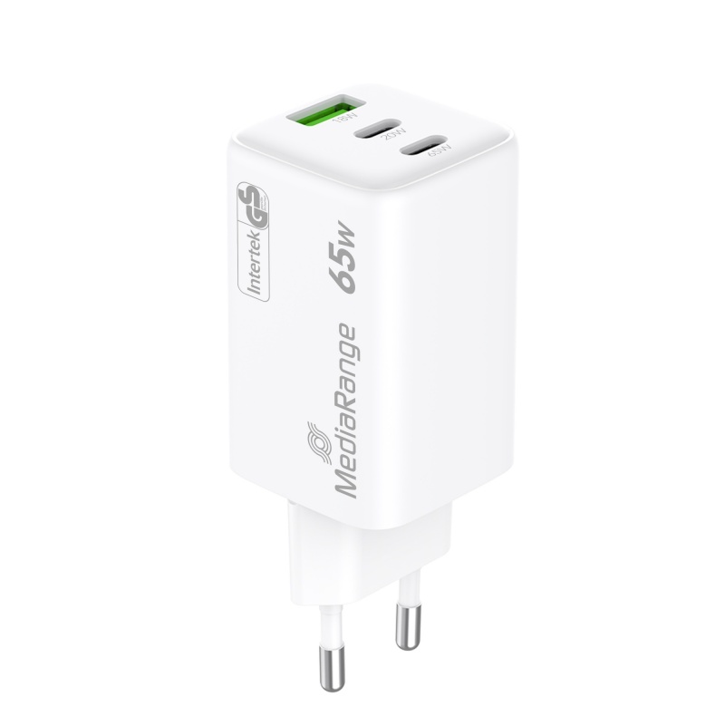 Ładowarka MEDIARANGE 65W, szybkie ładowanie, 2xUSB-C + 1xUSB-A, biały