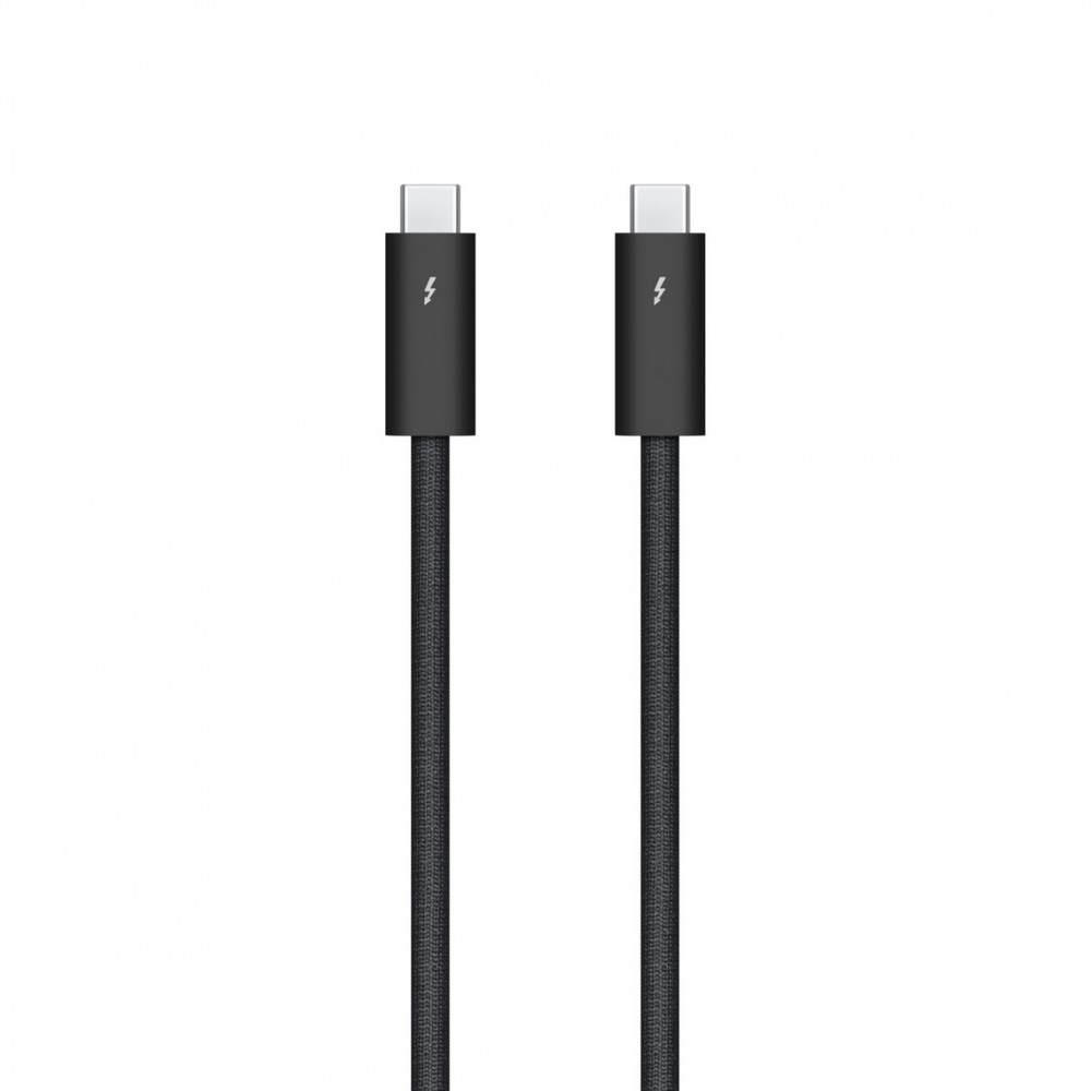 Czarny, pleciony przewód o długości 1,8 m, który zwija się bez plątania i pozwala przesyłać dane z szybkością do 40 Gb/s przez port Thunderbolt 3, Thunderbolt 4 i USB 4 oraz do 10 Gb/s przez port USB 3, a także korzystać z wyjścia wideo DisplayPort (HBR3) i ładować urządzenia mocą nawet 100 W. Służy do łączenia Maca wyposażonego w port Thunderbolt 3 lub 4 (USB-C) z wyświetlaczami i urządzeniami Thunderbolt (USB-C) i USB, takimi jak Studio Display, Pro Display XDR, stacje dokujące czy dyski twarde. Przewodu można też użyć do podłączenia iPhonea 15 Pro do Maca. Transfer danych do 40 Gb/s Transfer danych przez interfejs USB 3.2 do 10 Gb/s Wyjście wideo DisplayPort (HBR3) Możliwość podłączania urządzeń i wyświetlaczy z portem Thunderbolt (USB-C) i USB Zasilanie mocą do 100 W Pleciona powłoka, która umożliwia zwijanie bez plątania Przewód aktywny Logo Thunderbolt odróżniające go od innych przewodów Możliwość kaskadowego podłączenia nawet sześciu urządzeń Thunderbolt 3