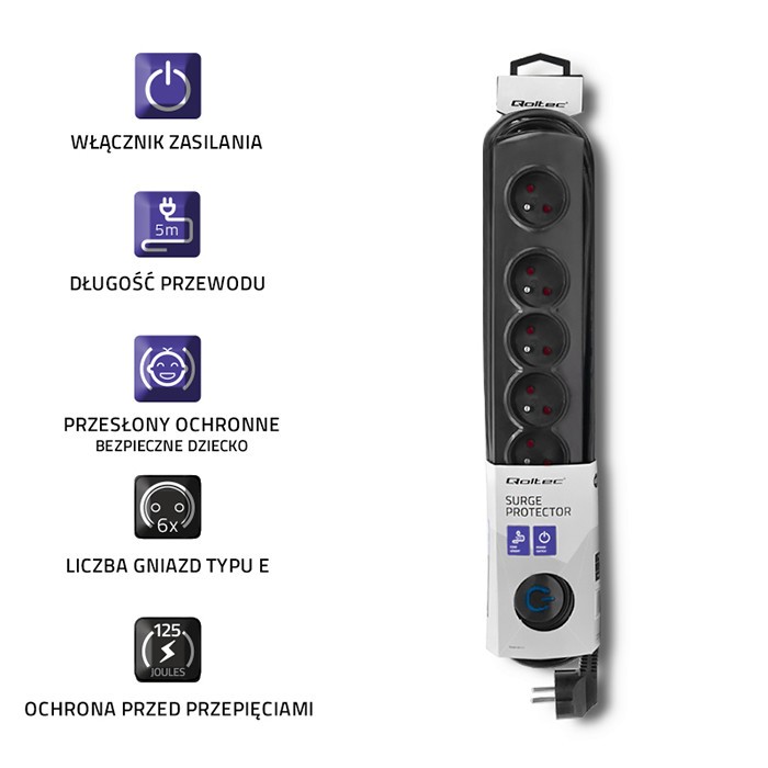 Listwa antyprzepięciowa | 6 gniazd | 5m