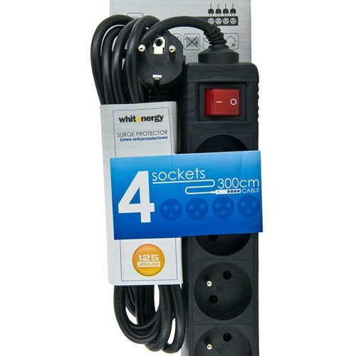 Listwa antyprzepięciowa STANDARD|4 gniazda|3m|czarna