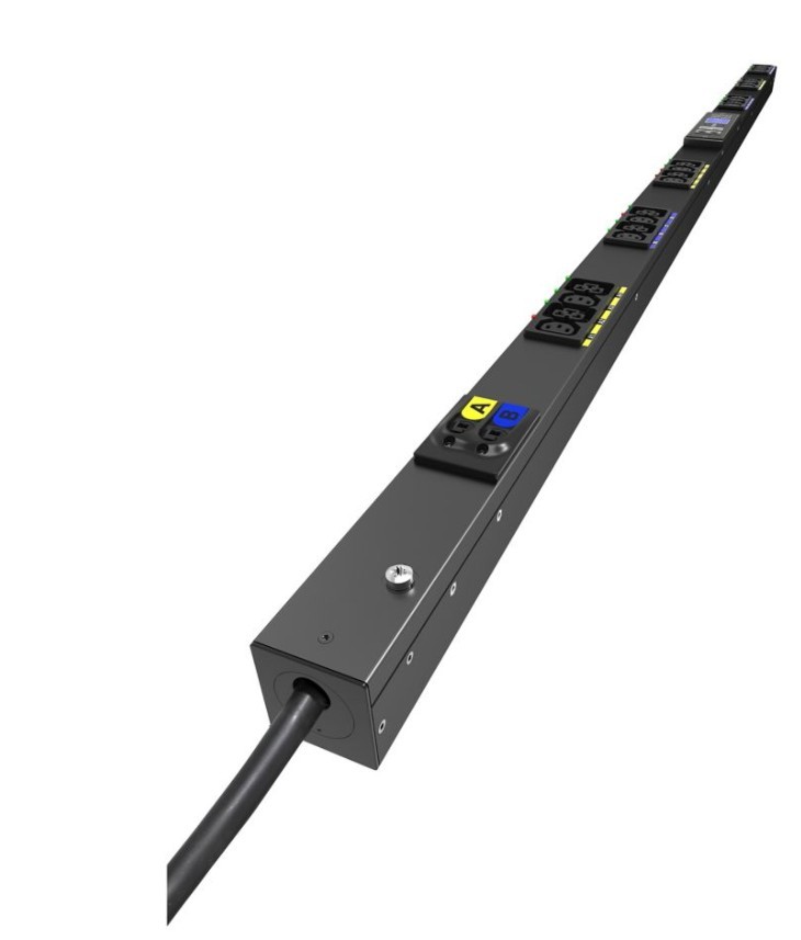 Zdalne zarządzanie Uniwersalne gniazdo C39 obsługujące wtyczki C14 lub C20 Gniazda z systemem przytrzymującym zarówno wtyczki standardowych kabli zasilających, jak i tych z systemem P-Lock Standardy cyberbezpieczeństwa UL 2900-1 i IEC 62443-4-2 Sieciowy moduł sterujący Hot-Swap (wymienialny na gorąco) Kaskadowanie sieciowe, połączenie do 32 PDU w pętli Współdzielenie zasilania między dwoma modułami sterującymi PDU zapewnia stały dostęp do danych i czujników PDU Dokładność rozliczeniowa IEC Class 1 +/- 1% Gigabitowa karta sieciowa z portami 2 x Gb Obsługa protokołów RestAPI, Modbus TCP, SNMP, LDAP, HTTPS Zarządzanie gniazdami: zdalne wł./wył., restart i sekwencyjne uruchamianie Opcjonalny czujnik temperatury/wilgotności