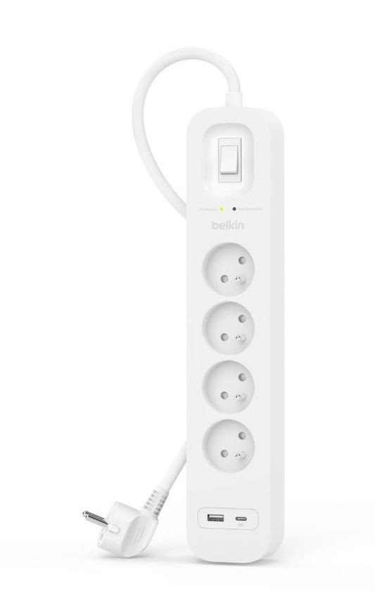 Zabezpieczenie przeciwprzepięciowe z portami USB-C i USB-A (4 gniazda, 1 port USB-A i 1 port USB-C)