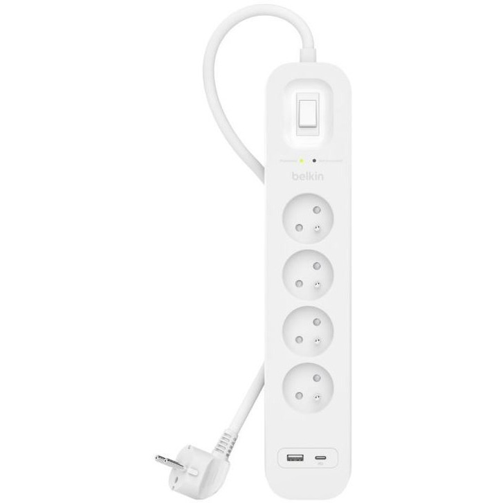 Korzyści ze stosowania produktu 525 J ochrony przeciwprzepięciowej Szybkie ładowanie przez USB-C PD Porty USB-C i USB-A Ładowanie USB-C o maksymalnej mocy 18 W Wydłuża trwałość urządzeń elektronicznych Bardziej inteligentna i bezpieczna konstrukcja Przewód zasilający o długości 2 m Otwory montażowe z tyłu umożliwiają łatwy montaż w celu zaoszczędzenia miejsca na podłogach i blatach Wskaźniki ochrony informują, że urządzenia są bezpieczne Zgodność z gniazdami AC, portami USB-C PD, portami USB-A 2-letnia gwarancja