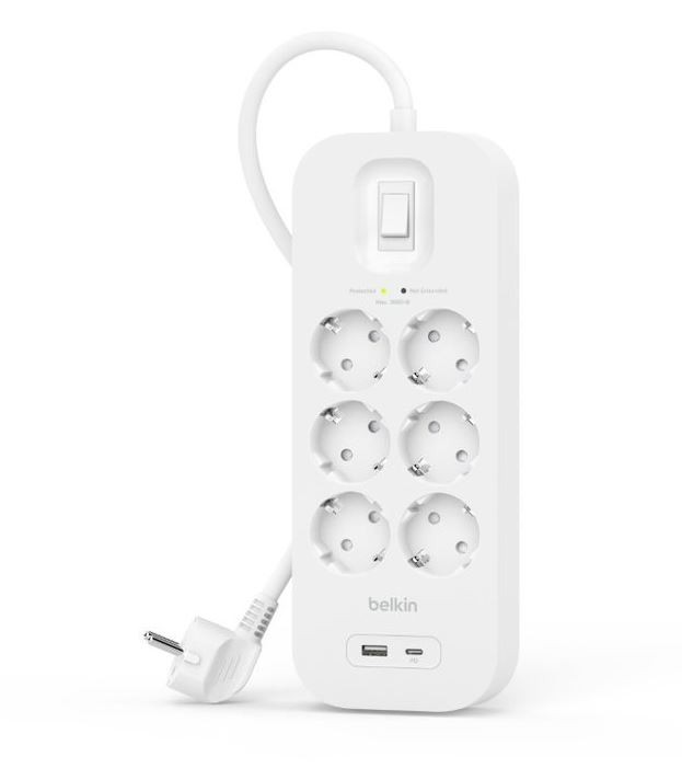 Wydłuż działanie urządzeń elektronicznych i sprzętu dzięki zabezpieczeniu przeciwprzepięciowemu 650 J, wyposażonemu w sześć gniazd AC oraz porty USB-C PD i USB-A