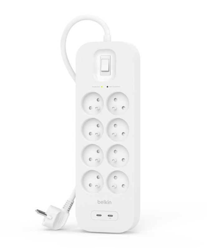 Cechy rodziny produktów Belkin SurgePlus Trójdrożna ochrona (przewód fazowy, neutralny, uziemienia) Wiele zabezpieczonych gniazd