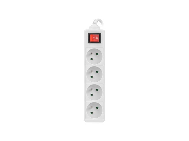 Listwa zasilająca 1,5m, biała, 4 gniazda, z wyłącznikiem, kabel wykonany z pełnej miedzi