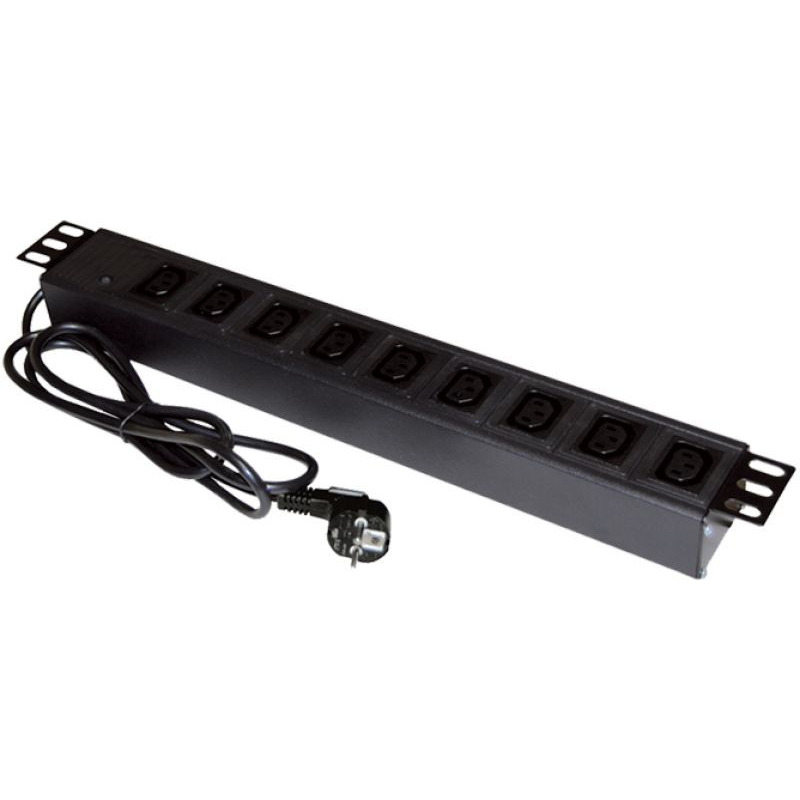 Pozostałe parametry: Standard: 1U/19" Gniazda: 9 x IEC 60320 C13 Wtyk: 1 x CEE 7/7 Obudowa korpusu: aluminiowa Materiał gniazd: samogasnące tworzywo ABS Prąd znamionowy urządzenia: 10A Maksymalne obciążenie: 2000W Długość przewodu zasilającego: 1.8m Podświetlany wyłącznik sieciowy: nie Dodatkowe informacje: dioda sygnalizacyjna LED Wyposażenie dodatkowe: zestaw śrub mocujących wraz z koszyczkami i podkładkami