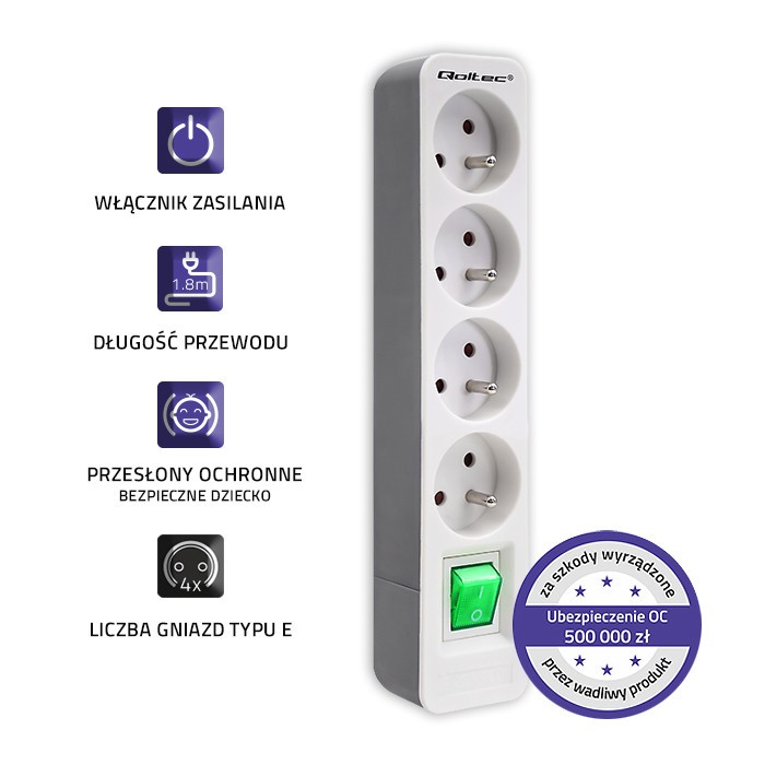Chcąc zapewnić ochronę Tobie i innym użytkownikom urządzeń podłączonych do listwy wyposażyliśmy ją w następujące zabezpieczenia: Przesłona ochronna we wszystkich gniazdach stanowiąca zabezpieczenie przed dziećmi jest to szczególnie ważne w miejscach, w których dzieci są nieodłączną częścią życia, Wykonanie z niepalnego materiału PP, Ubezpieczenie OC.