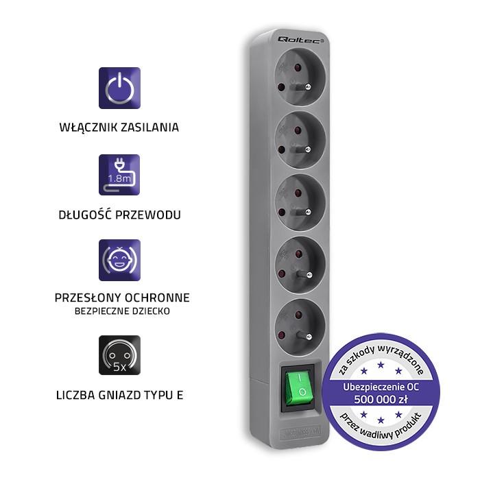 Chcąc zapewnić ochronę Tobie i innym użytkownikom urządzeń podłączonych do listwy wyposażyliśmy ją w następujące zabezpieczenia: Przesłona ochronna we wszystkich gniazdach stanowiąca zabezpieczenie przed dziećmi jest to szczególnie ważne w miejscach, w których dzieci są nieodłączną częścią życia, Wykonanie z niepalnego materiału PP, Ubezpieczenie OC.