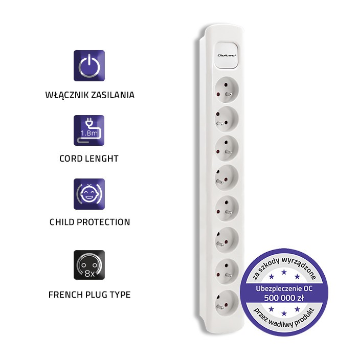 Chcąc zapewnić ochronę Tobie i innym użytkownikom urządzeń podłączonych do listwy wyposażyliśmy ją w następujące zabezpieczenia: Przesłona ochronna we wszystkich gniazdach stanowiąca zabezpieczenie przed dziećmi jest to szczególnie ważne w miejscach, w których dzieci są nieodłączną częścią życia, Wykonanie z niepalnego materiału PP, Ubezpieczenie OC.