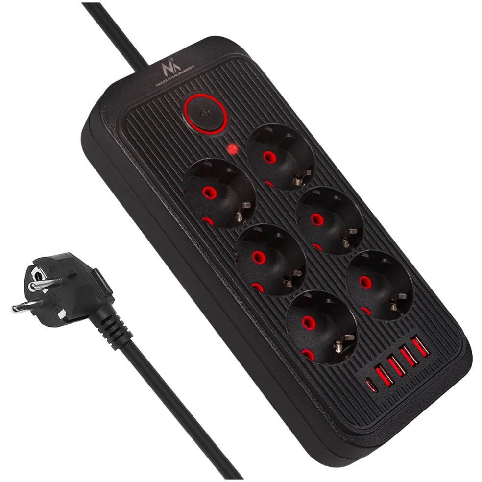 Listwa zasilająca MCE391 B 6 gniazd 4xUSB-A 1xUSB-C, 110-240V AC 50/60Hz, 2.1A max 2500W, czarna