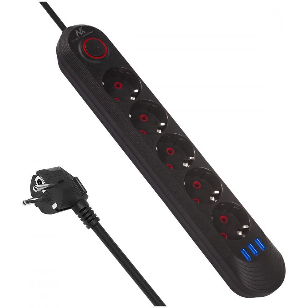 Listwa zasilająca MCE395 B 5 gniazd 3xUSB, 110-240V AC 50/60Hz, 2.1A max 2500W, czarna
