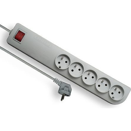Przedłużacz przeciwprzepięciowy 5x uziemienie 5m zapewnia ochronę urządzeń i wygodę użytkowania dzięki pięciu gniazdom oraz długiemu przewodowi.