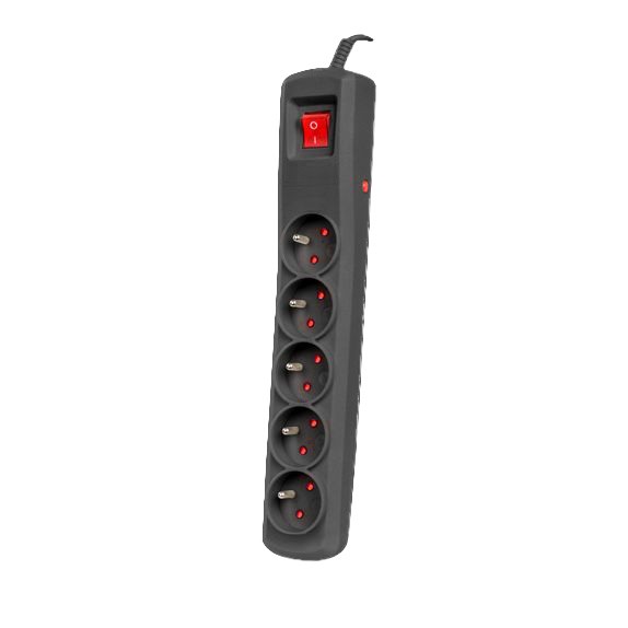 Pozostałe parametry: Napięcie znamionowe Un: ~250V Częstotliwość: 50 Hz Prąd znamionowy / Maksymalne obciążenie: 10A (2500W) Absorpcja energii (sumaryczna): 196J Prąd upływu: 0,5mA Czas reakcji: 25ns Maksymalny prąd wyładowczy Imax: 6kA - 8/20 s Napięcie trwałej pracy Uc: 250V 50Hz Napięciowy poziom ochrony Up: 1,2kV Napięcie próby Uoc: 4kV Zabezpieczane linie: L-N Bezpieczniki: Bezpiecznik automatyczny 10A/250V System ochrony przeciwporażeniowej: kołki ochronne gniazd połączone z przewodem ochronnym Wyłącznik: podświetlany, dwubiegunowy Obudowa: tworzywo sztuczne, samogasnące
