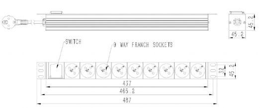 Listwa zasilająca rack (PDU), 9 gniazd FR, 1U, 16A, wtyk FR 2m Profesjonalna listwa zasilająca, obudowa aluminiowa Montowana w szafie rack - idealna do szaf serwerowych