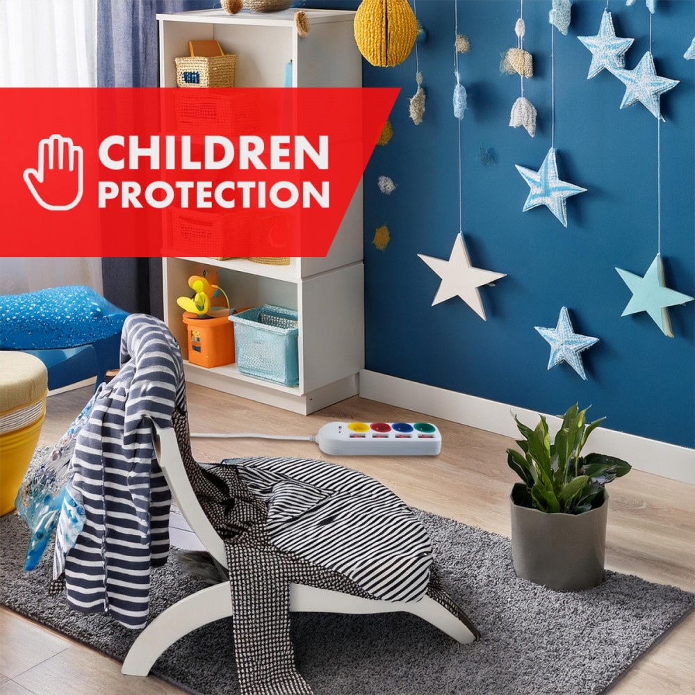 Listwa zasilająca Maclean MCE508 to praktyczne urządzenie, które umożliwia podłączenie czterech pełnowymiarowych wtyczek oraz ładowanie urządzeń przez dwa porty USB (A i C). Każde z gniazd posiada osobny, podświetlany wyłącznik, co pozwala na indywidualne zarządzanie zasilaniem. Dzięki temu, możesz wyłączyć zasilanie dla konkretnego urządzenia bez odłączania go od listwy, co jest niezwykle wygodne i oszczędza energię. Listwa wyposażona jest w zabezpieczenie przed dziećmi, zapewniając bezpieczeństwo użytkowania w miejscach, gdzie przebywają najmłodsi.