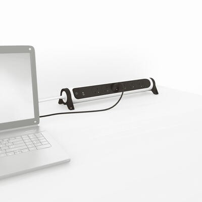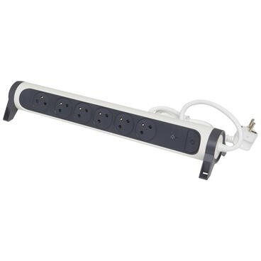 Przedłużacz z listwą obrotową 6x2P+T, wyłącznikiem, ochroną przeciwprzepięciową i przewodem 1,5m. Biało-czarny. 6 gniazd podtynkowych 2P+E w standardzie francusko-belgijskim, 16 A, 230 V, 3680 W. Listwa może być regulowana co 12° w prawo lub w lewo w stosunku do pozycji poziomej. 1 gniazdo pod kątem 90° do podłączenia transformatora bez blokowania drugiego gniazda. Inne gniazda są zorientowane pod kątem 45° Podświetlany na niebiesko włącznik/wyłącznik. Listwy wyposażono w gniazda podtynkowe, zapewniając estetykę i zapobiegając przedostawaniu się brudu do dołków. Regulacja co 12° w prawo lub w lewo w stosunku do montażu poziomego. Działanie przeciwprzepięciowej ochrony: zielone światło, listwa jest chroniona. Dioda zgaszona, ogranicznik przepięć nie działa. Niemniej jednak gniazda i porty USB są zasilane. Jeśli funkcja odgromnika jest dla Ciebie niezbędna, w takim przypadku musisz wymienić listwę zasilającą.