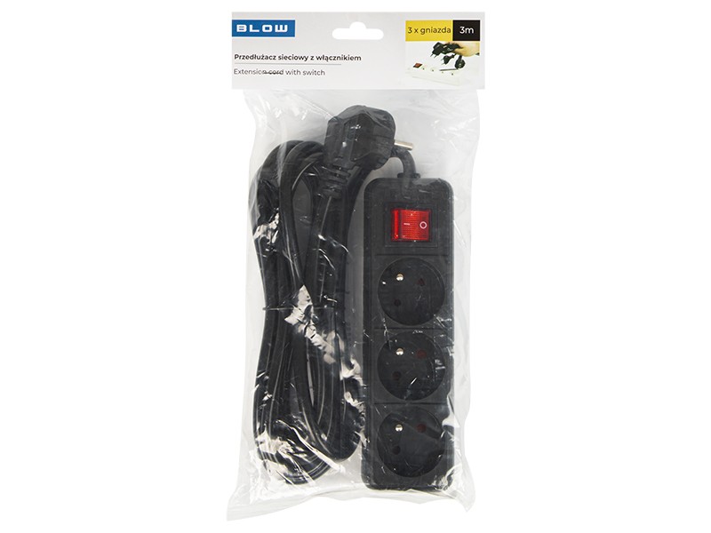 Przedłużacz sieciowy PR-370WSP 3x gniazda z uziemieniem, włącznik, 3m, czarny