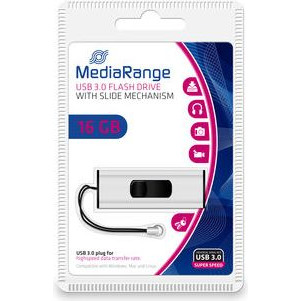 Pamięć Pendrive MediaRange 16GB USB 3.2 Gen 1 możliwość zawieszenia, srebrno-czarny, MR915