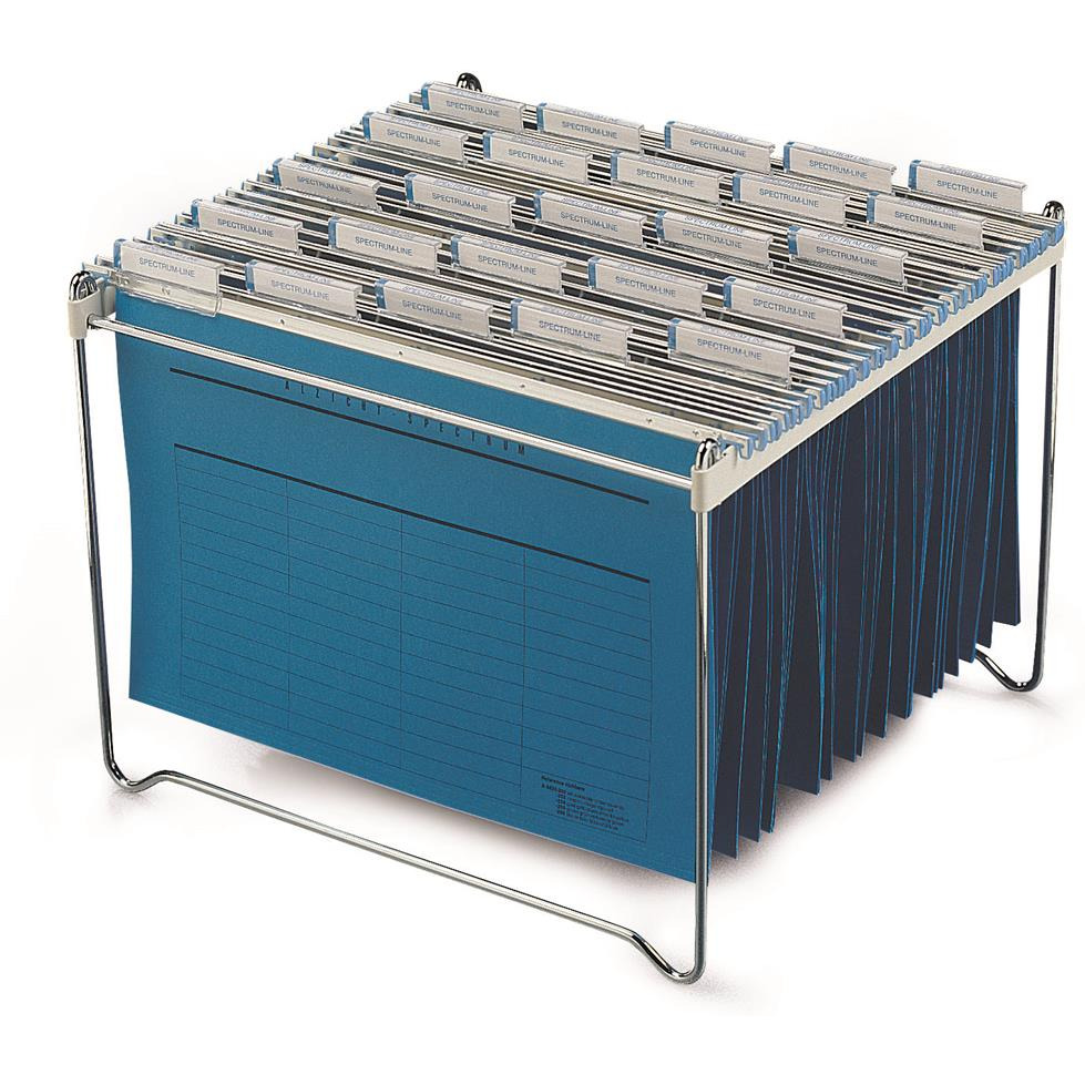 Stojak na teczki zawieszane wykonany z metalu, na 30 - 40 teczek zawieszanych - w formacie A4 oraz folio.. (Sprzedaż bez teczek). Wymiary (wys. x szer. x głęb.): 250 x 350 x 370 mm. Dostarczany w częściach z instrukcją montażu