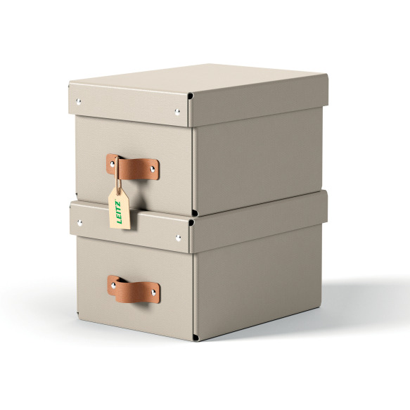 Pudełko do przechowywania Leitz Puro z pokrywką, małe, 7 l, z tektury w 100% z recyklingu, 2 szt., beżowe 61470012