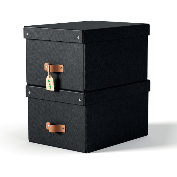 Pudełko do przechowywania Leitz Puro z pokrywką, średnie, 17 l, z tektury w 100% z recyklingu, 2 szt., czarne 61490095