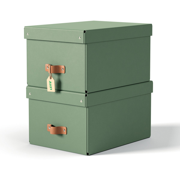 Pudełko do przechowywania Leitz Puro z pokrywką, średnie, 17 l, z tektury w 100% z recyklingu, 2 szt., zielone 61490050