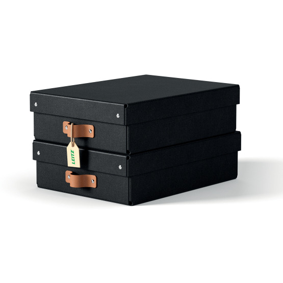 Pudełko do przechowywania Leitz Puro z pokrywką, średnie niskie, 8 l, z tektury w 100% z recyklingu, 2 szt., czarne 61480095
