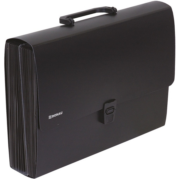 posiada 26 kieszeni dostosowanych dla formatu A4 wykonana z elastycznego, odpornego na pęknięcia PP wyposażona w rączkę oraz zamek, który zabezpiecza zawartość przed wysypaniem harmonijkowa budowa elastycznie dopasowuje się do stopnia wypełnienia i gwarantuje dużą pojemność 24 fiszki indeksujące (kolorowe kartoniki opisowe) w zestawie dla 26 kieszeni format: A4 wymiary: 330x240x75mm kolor czarny