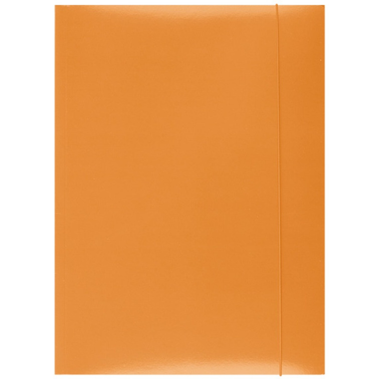 wykonana z kartonu o gramaturze 300gsm 3-skrzydłowa pokryta lakierem drukarskim o wysokim połysku okrągła, pionowa gumka w kolorze teczki chroni zawartość przed wysunięciem format: A4 rozmiar: 232x320mm kolor pomarańczowy