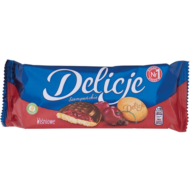 Ciastka DELICJE SZAMPAŃSKIE, 147 g, wiśniowe, krótki termin ważności