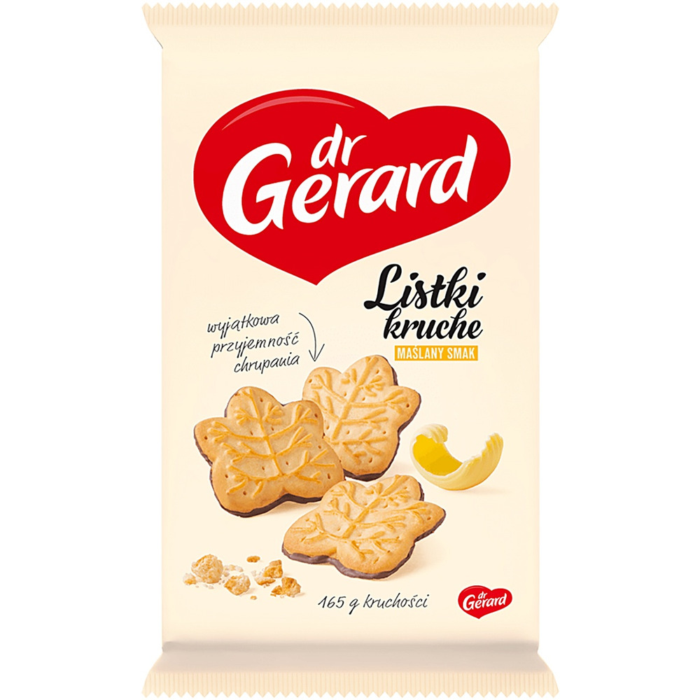 Ciastka DR GERARD Listki Kruche, maślane z polewą kakaową, 165g