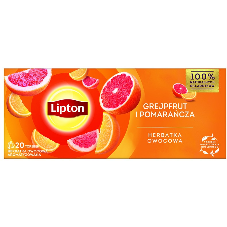 Herbata LIPTON owocowa, grejpfrut i pomarańcza, 20 torebek