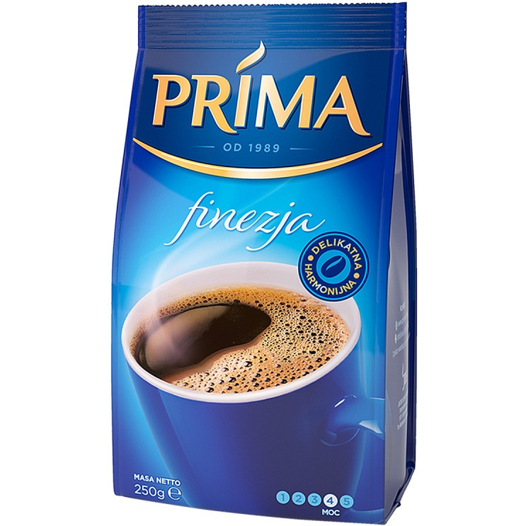 Prima Finezja to mielona kawa o zbalansowanym smaku i wyjątkowym aromacie harmonijnie uprażonych ziaren