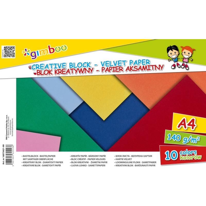 Blok kreatywny GIMBOO, A4, 140gsm, papier aksamitny, klejony, mix kolorów