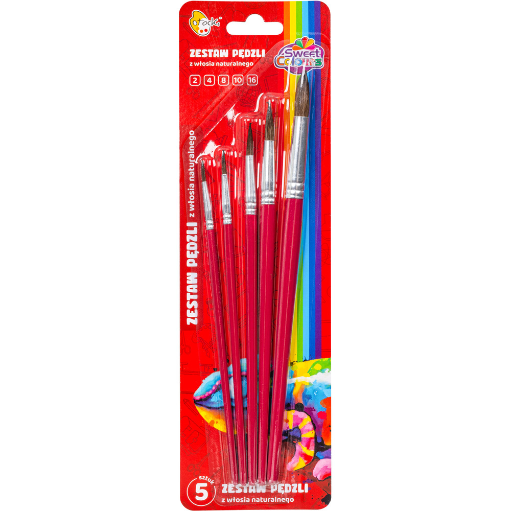 Zestaw pędzli 5 sztuk z włosia naturalnego nr: 2,4,8,10,16 Sweet Colours 60751 OTOCKI