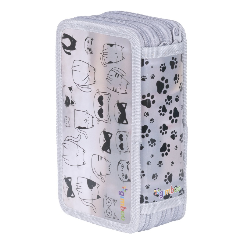 Piórnik szkolny GIMBOO, z wyposażeniem, 3 komory, Puppies 2025, szary
