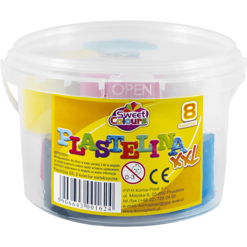 Plastelina xxl 8-kolorowa,wiaderka 0,5 kg Sweet Colours 01624 KOMA-PLAST
