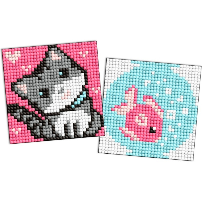 Diamentowa mozaika na magnesie IDEYKA, 9x9 cm, kids, ryba i kotek, 2 szt.