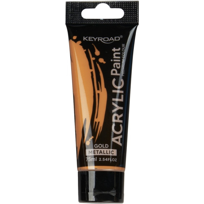 Farba akrylowa KEYROAD, metaliczna, 75ml, tubka, złota