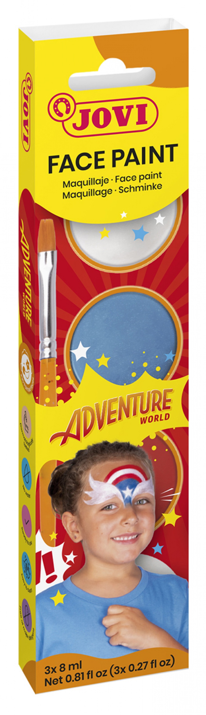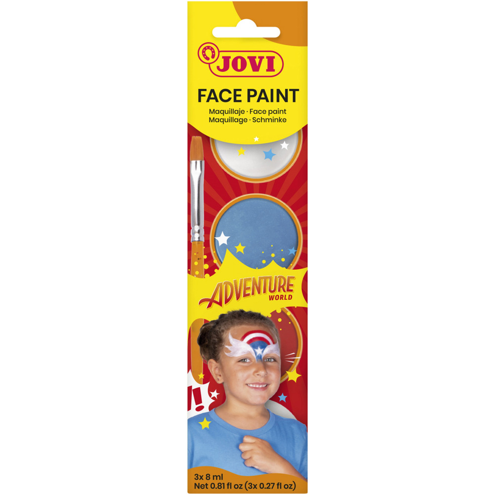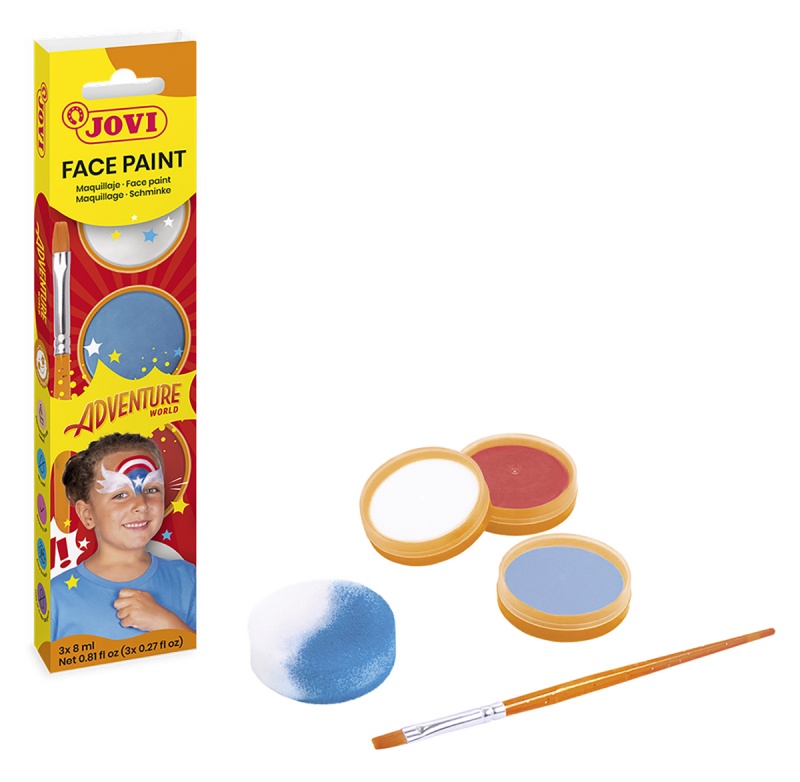 Farby do malowania twarzy JOVI Adventure, 3x8ml, z pędzelkiem i gąbką, mix kolorów