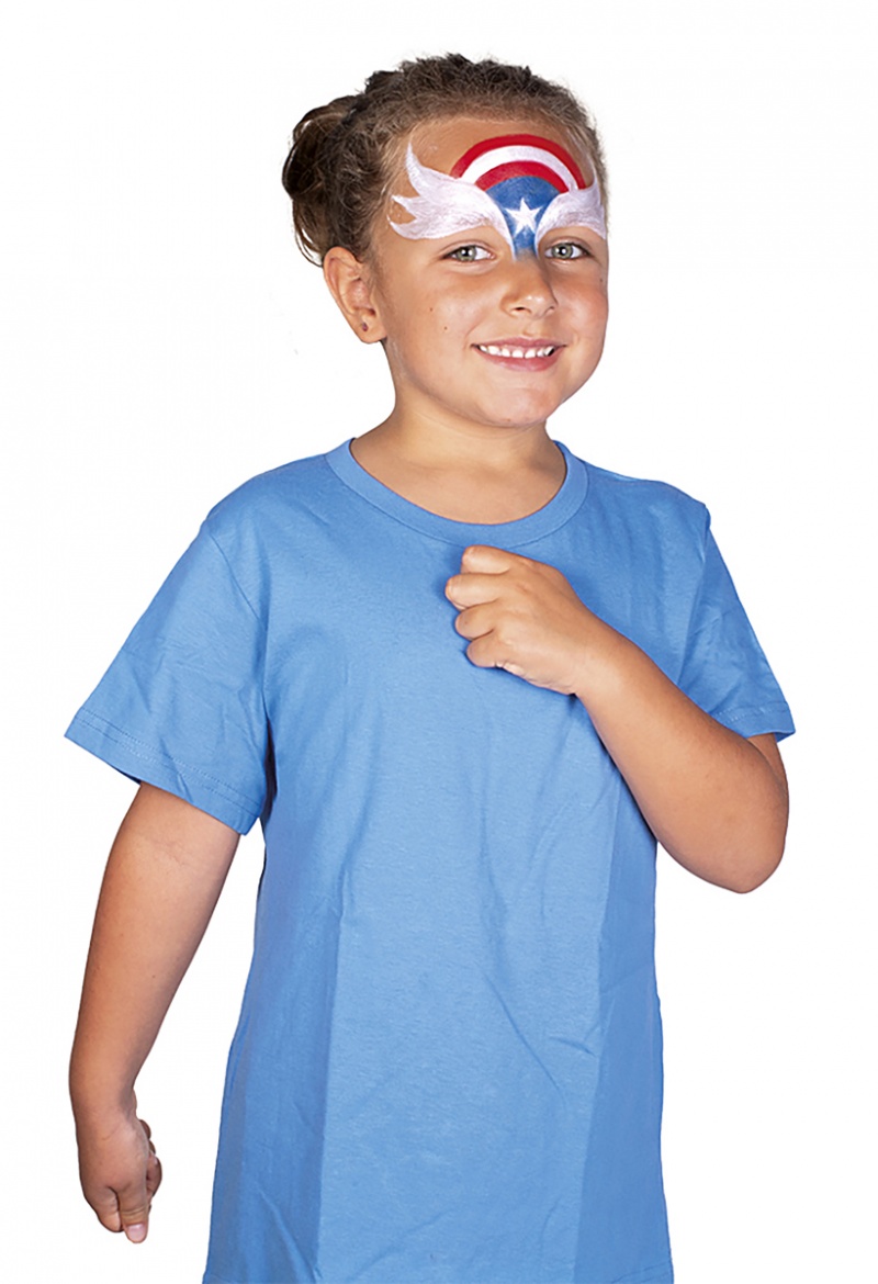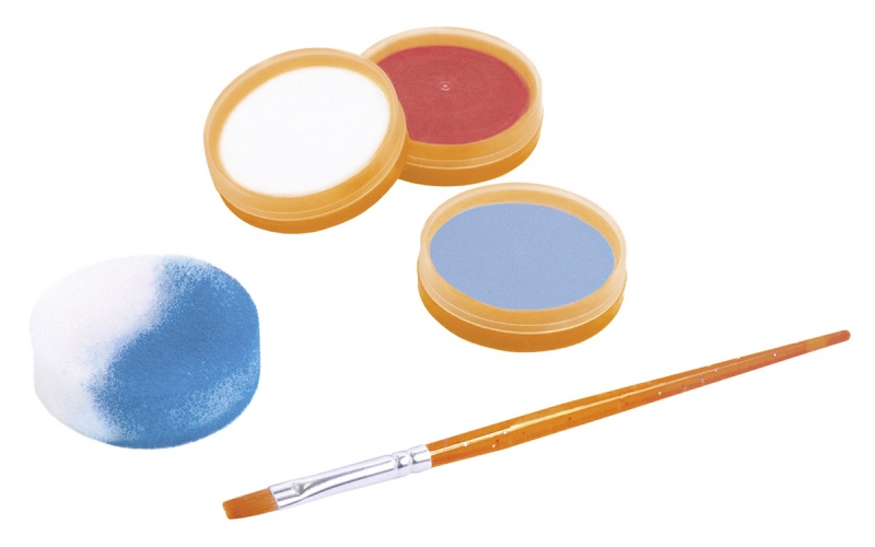 zestaw Adventure zawiera 3 pojemniki po 8ml kremowych farb do twarzy w kolorach białym, czerwonym i jasnoniebieskim