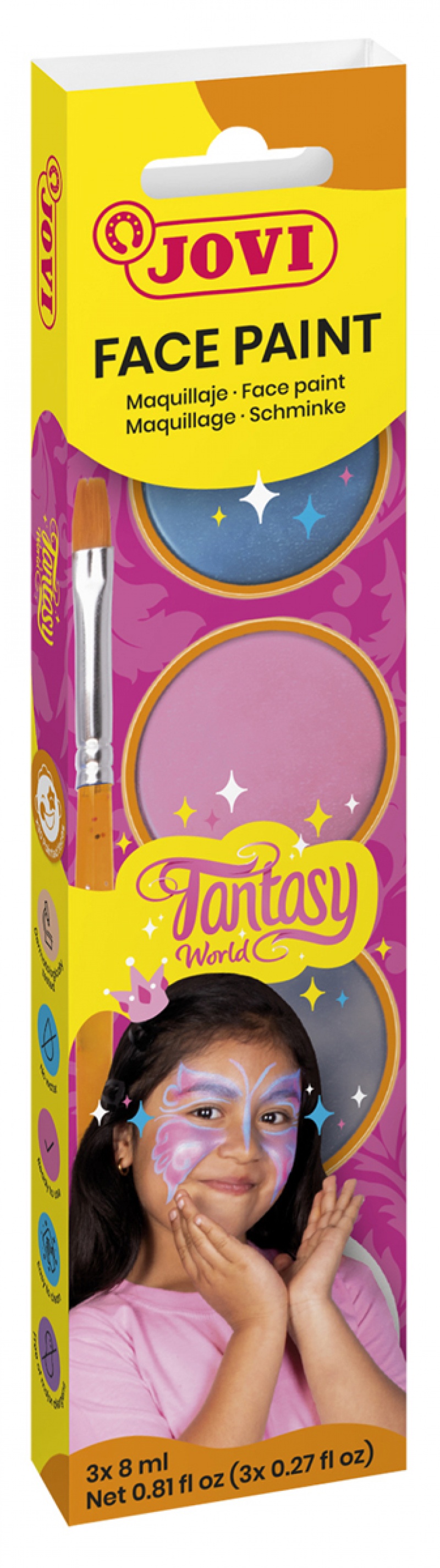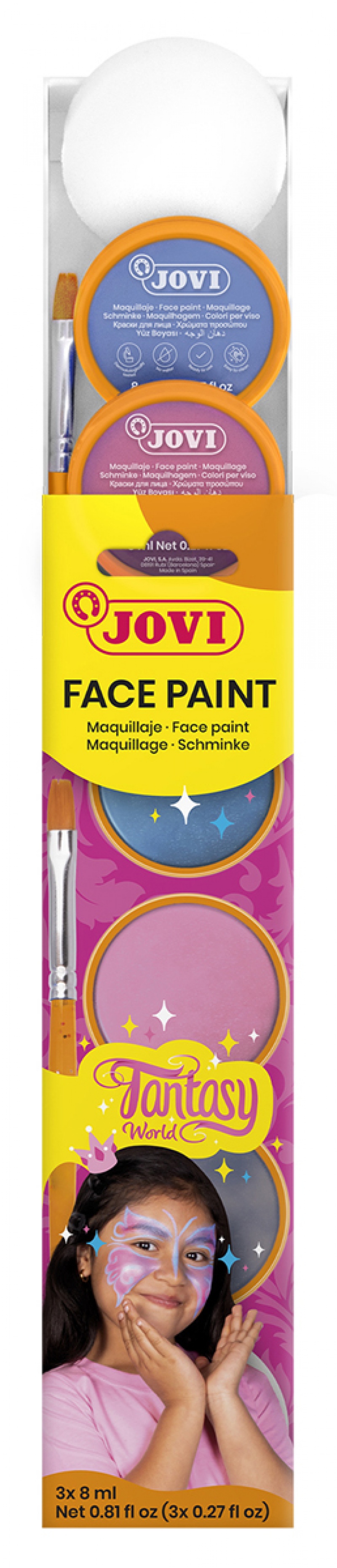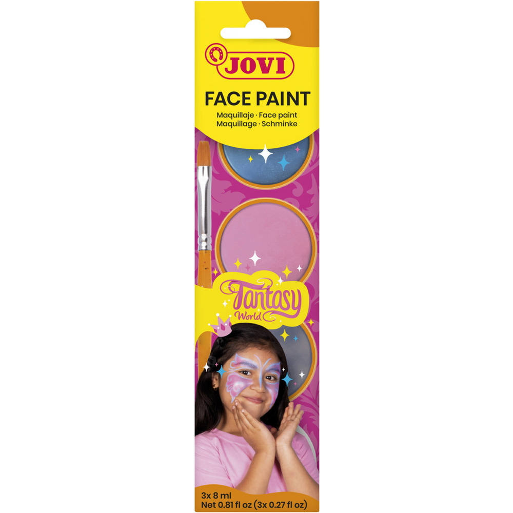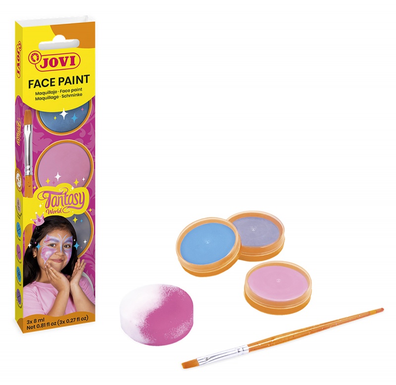 Farby do malowania twarzy JOVI Fantasy, 3x8ml, z pędzelkiem i gąbką, mix kolorów