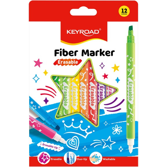 Flamastry KEYROAD Fiber Marker, wymazywalne, 12 szt., mix kolorów
