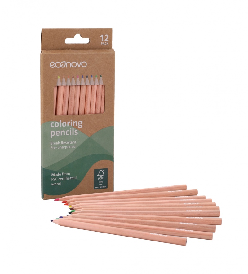 Kredki ołówkowe ECONOVO, FSC, 3mm, 12 szt., mix kolorów