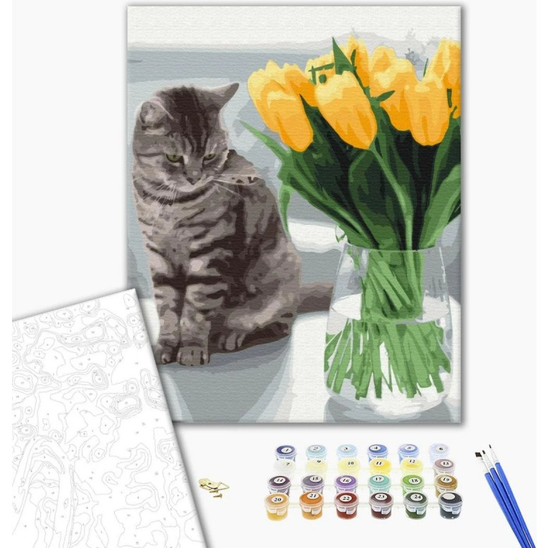 Malowanie po numerach BRUSHME, 40x50 cm, kot z tulipanami, 1 szt., w pudełku