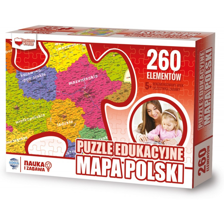 Puzzle edukacyjne GŁOWALA, mapa Polski, 260 elementów, 60x40cm