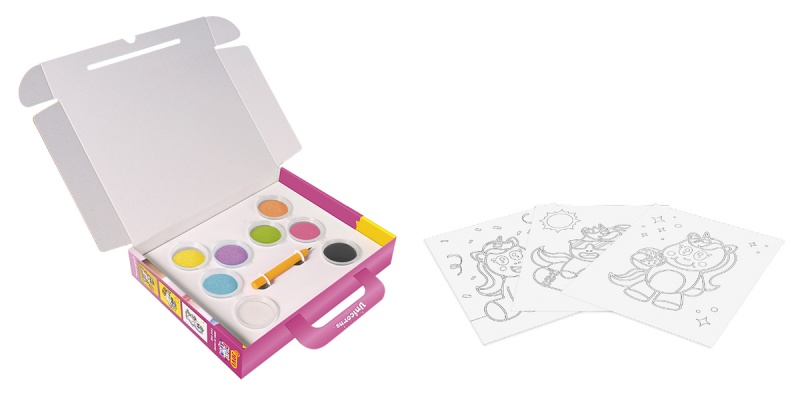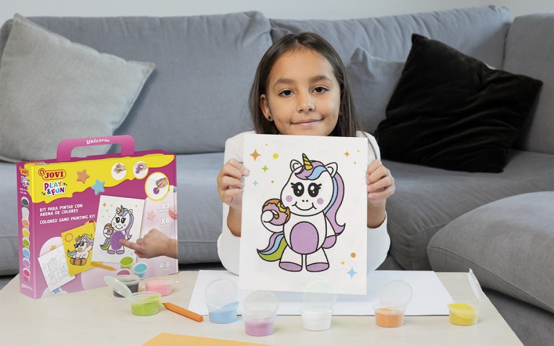 zestaw JOVI do malowania piaskiem to kreatywna propozycja dla wszystkich dzieci kochających jednorożce, kolory i błyskotki