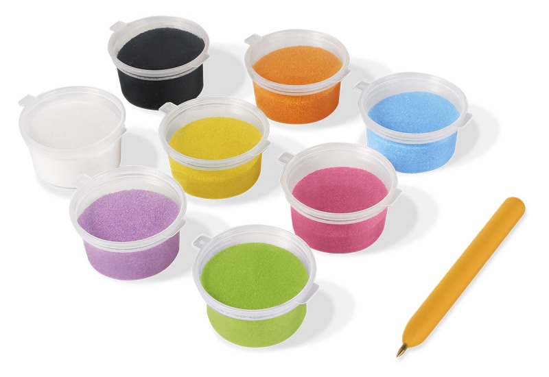 8 kolorów piasku (po 40?g) w zamykanych pojemniczkach