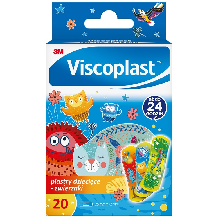 Plastry dziecięce VISCOPLAST Zwierzęta, 72x25mm, 20 szt., pudełko